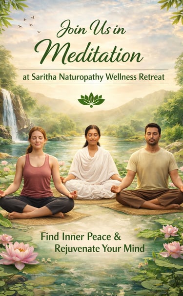 Discover a sanctuary where Meditation, and Holistic Healing converge. At Saritha Naturopathy Wellness Retreat, we invite you to embark on a transformative journey toward balance, awareness, and joy.